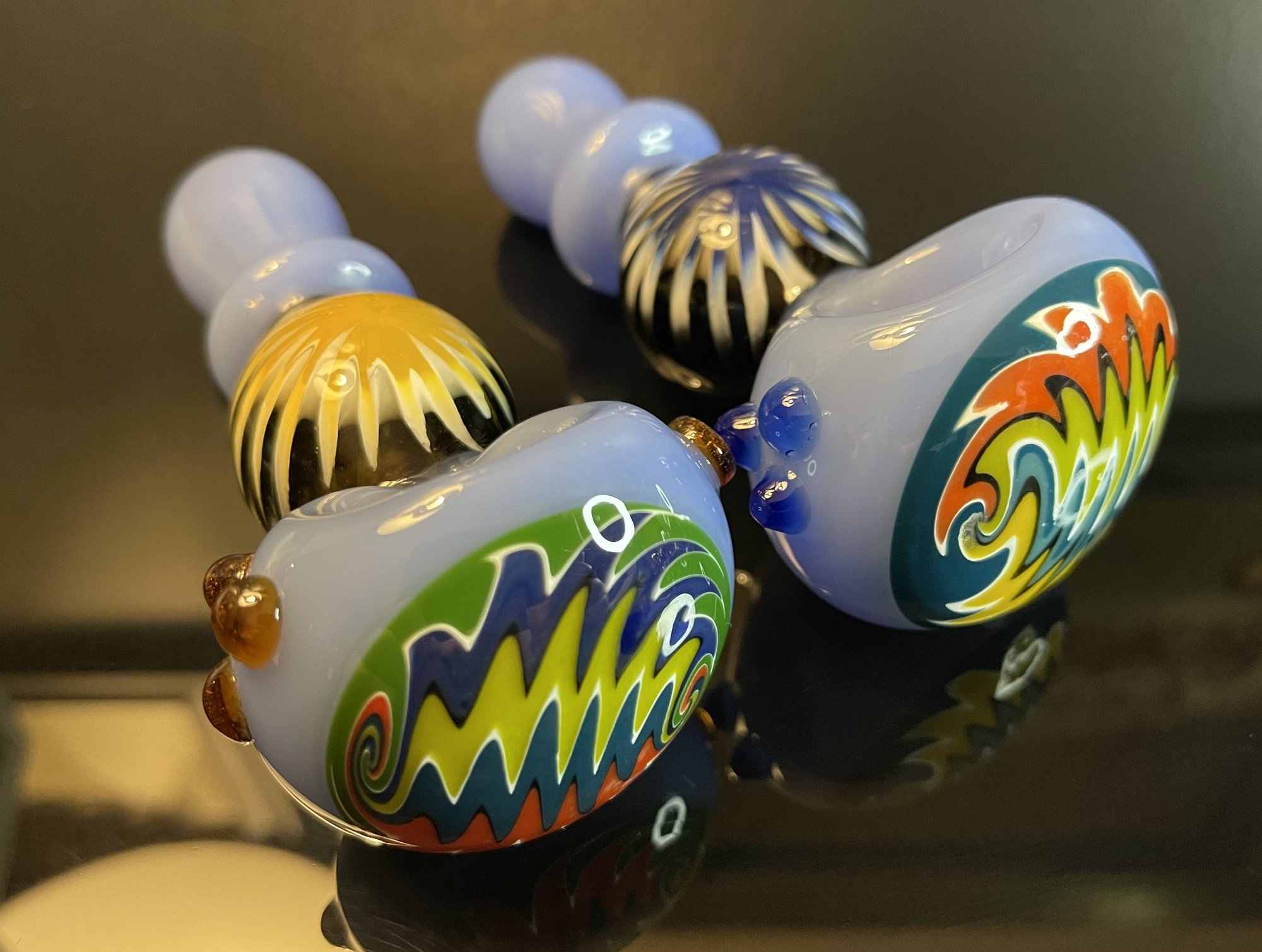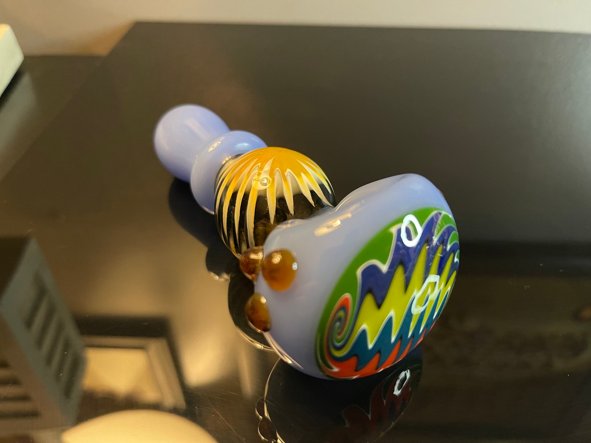 This amazing 4.5-inch Hand Pipe Spoon Reversal Art Wig Wag Glass provides a unique, eye-catching look and feel that you won't find anywhere else. With an impressive blend of colors and shapes, this piece offers an exhilarating experience for all your smoking needs. Get ready to experience an awe-inspiring smoking session! FREE SHIPPING!