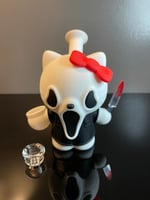 Product Features: ✅ Silicone Body – Lightweight, drop-resistant, flawless hits, unbreakable, and easy to clean. ✅ Hello Kitty x Ghost-Inspired Design – A bold and super fun twist on classic characters. ✅ Compact & Portable – and works perfectly for both display and on-the-go sessions. ✅ Easy Maintenance – Flexible and dishwasher-safe for hassle-free cleaning. ✅ Includes Glass Bowl – Ready to use right out of the box. ✅ The knife and bowl are inside the pipe. Just pop the head off ✅ Disassembles into 4 pieces for convenient and easy cleaning. ✅ Height 4.5 Inches tall Cute, creepy, and cloud-ready, this bubbler is made for collectors and casuals alike. Must be at least 21 years old to purchase. For tobacco use only. These are artistic or decorative pipes, unique, artisan, Silicone & glass pipes.